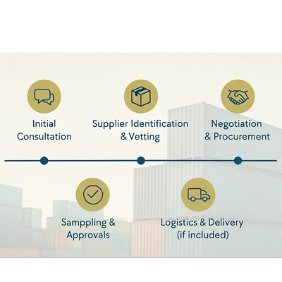 Each package offers a different level of involvement — from basic supplier introductions through to full-service procurement and ongoing support.
